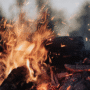 Imagen de llamas y chispas en una hoguera.
